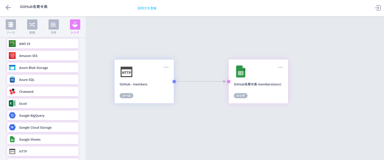 差分機能を使うことで新たにInviteされたGitHubアカウントを抽出することができます。 データ取得 → 差分 → Insertのフロー完成